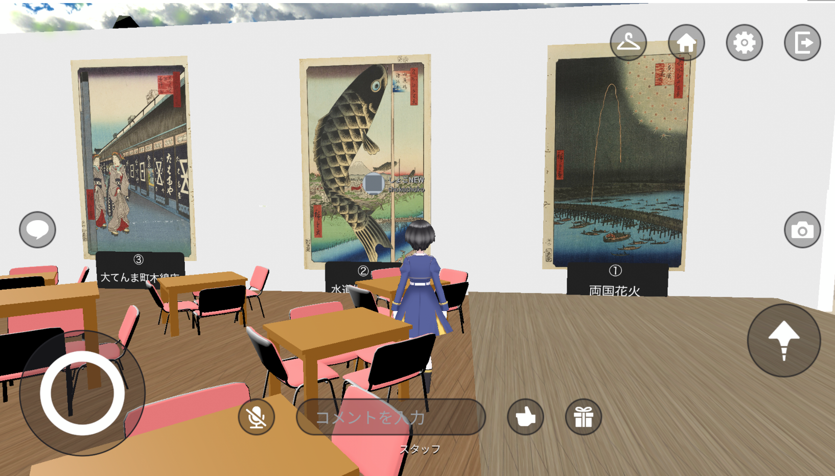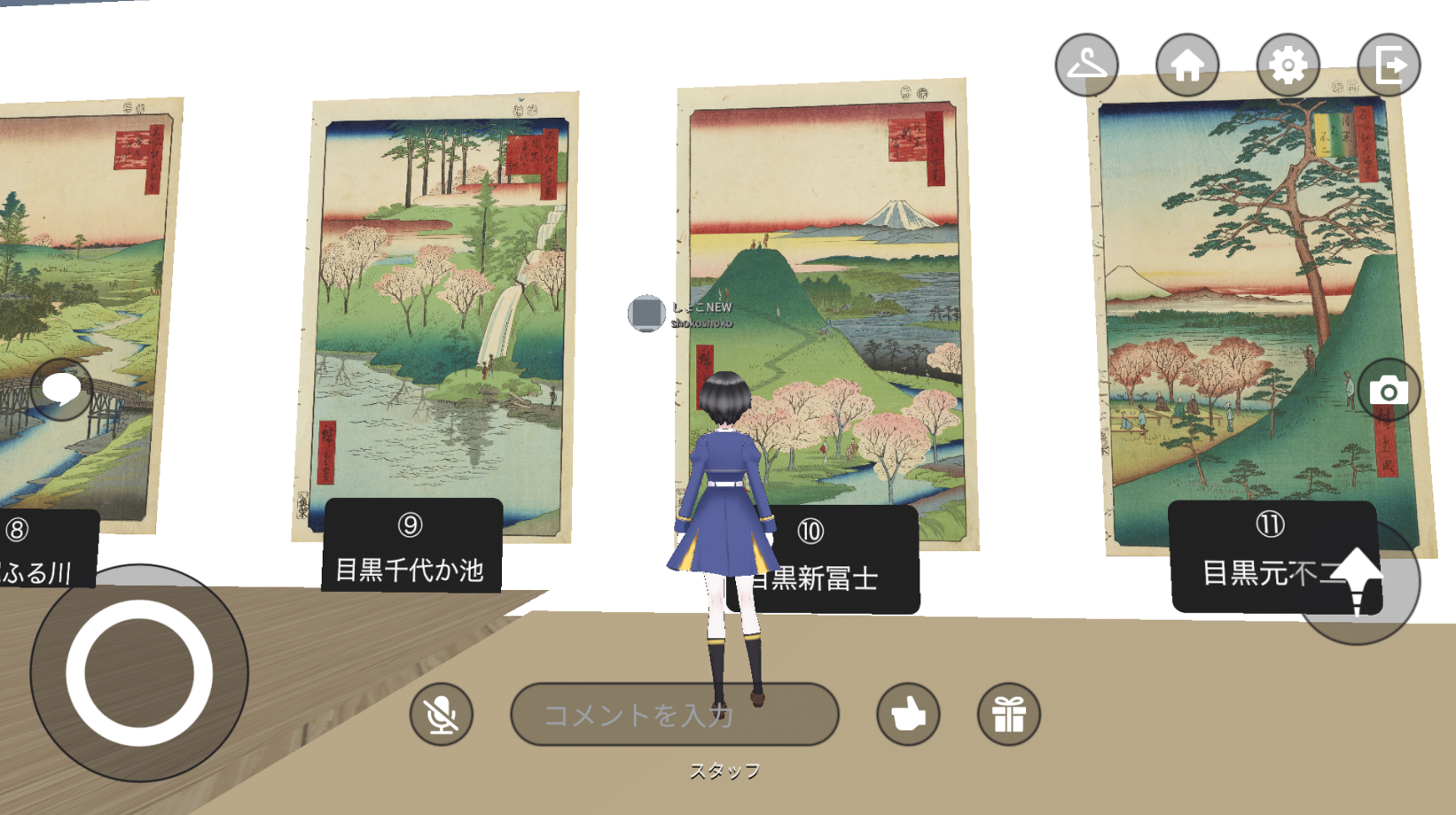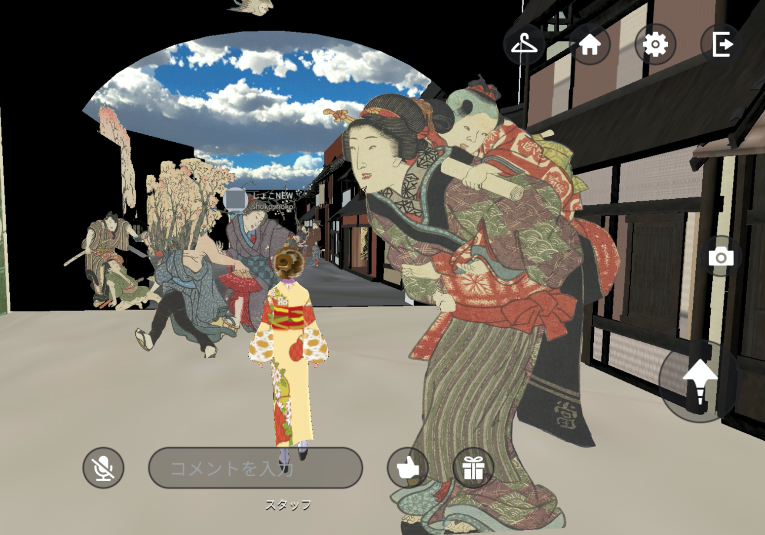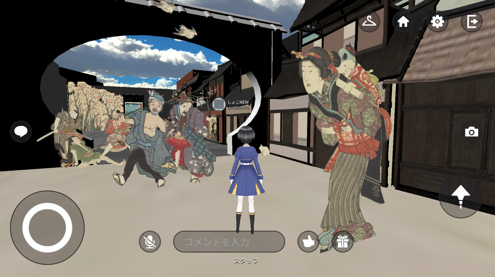 ※写真撮影をする際には、clusterのカメラではなくスマホのスクリーンショットで撮影していただくと、浮世絵が写真に写ります。